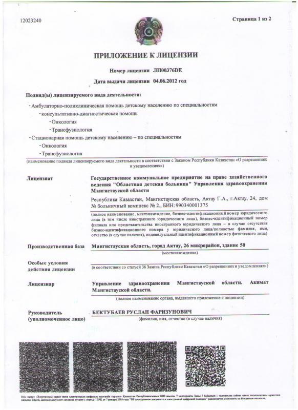 ГКП на ПХВ «МАНГИСТАУСКАЯ ОБЛАСТНАЯ МНОГОПРОФИЛЬНАЯ ДЕТСКАЯ БОЛЬНИЦА» УПРАВЛЕНИЯ ЗДРАВООХРАНЕНИЯ МАНГИСТАУСКОЙ ОБЛАСТИ
