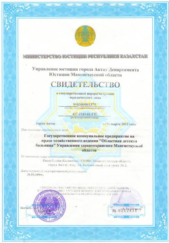 ГКП на ПХВ «МАНГИСТАУСКАЯ ОБЛАСТНАЯ МНОГОПРОФИЛЬНАЯ ДЕТСКАЯ БОЛЬНИЦА» УПРАВЛЕНИЯ ЗДРАВООХРАНЕНИЯ МАНГИСТАУСКОЙ ОБЛАСТИ